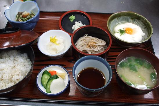 トロロ,山菜,酢の物,お新香,そば,みそ汁,御飯 (トロロにうずらの卵を乗せない場合1570円です。)